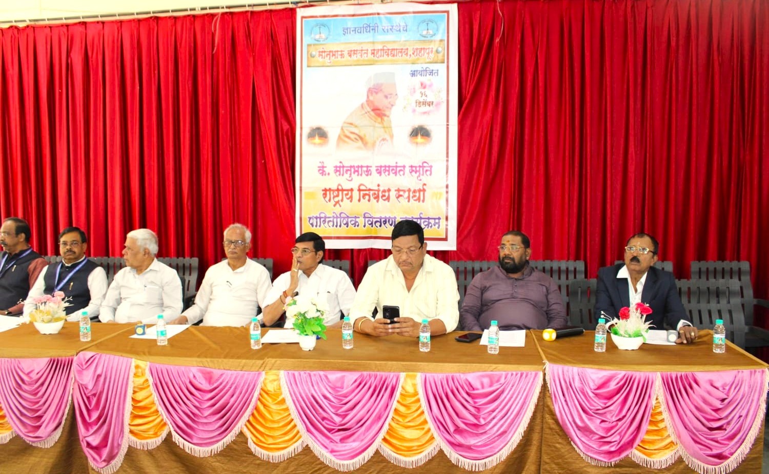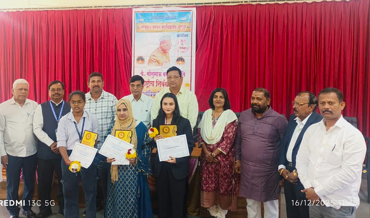 शहापूर येथील ज्ञानवर्धिनी संस्था संचालित सोनुभाऊ बसवंत कला व वाणिज्य महाविद्यालयाच्या अंतर्गत गुणवत्ता निर्धारण कक्ष व इतिहास विभाग यांच्या संयुक्त विद्यमाने, ज्ञानवर्धिनी संस्थेचे संस्थापक अध्यक्ष कै. सोनुभाऊ बसवंत ऊर्फ काका यांच्या पुण्यतिथीनिमित्त मंगळवार, दि. १६ डिसेंबर २०२५ रोजी कै. सोनुभाऊ बसवंत ऊर्फ काका यांच्या पुण्यतिथीचा कार्यक्रम तसेच त्यानिमित्ताने राष्ट्रीय स्तरावरील निबंध लेखन स्पर्धेच्या पारितोषिक वितरण समारंभाचे आयोजन करण्यात आले. या निबंध लेखन स्पर्धेचा विषय “नैसर्गिक आपत्ती व पर्यावरण : जागतिक समस्या आणि आव्हाने” असा होता. विद्यार्थ्यांमध्ये पर्यावरणाबाबत जागरूकता निर्माण करणे तसेच त्यांच्या विचार व अभिव्यक्तीस व्यासपीठ उपलब्ध करून देणे, हा या स्पर्धेचा प्रमुख उद्देश होता. देशभरातील विविध महाविद्यालयांमधून एकूण ६५ विद्यार्थ्यांनी या स्पर्धेत उत्स्फूर्त सहभाग नोंदविला. कार्यक्रमाचे अध्यक्षस्थान ज्ञानवर्धिनी संस्थेच्या विश्वस्त मंडळाचे अध्यक्ष मा. श्री. किशोर कुडव यांनी भूषविले. कार्यक्रमाचे प्रास्ताविक इतिहास विभाग प्रमुख प्रो. डॉ. जी. जी. सोनवणे यांनी केले. यावेळी महाविद्यालयातील विद्यार्थी, प्राध्यापक, प्रशासकीय कर्मचारी, प्राचार्य तसेच विश्वस्त मंडळ व कार्यकारी समितीचे पदाधिकारी व सदस्य यांनी कै. सोनुभाऊ बसवंत ऊर्फ काका यांना श्रद्धांजली अर्पण करून आदरांजलीपर मनोगत व्यक्त केले. या प्रसंगी ज्ञानवर्धिनी संस्थेच्या कार्यकारी समितीचे अध्यक्ष मा. श्री. बाळकृष्ण पाटील, विश्वस्त मंडळाचे उपाध्यक्ष मा. श्री. देवेंद्र शहा, कार्यकारी समितीचे उपाध्यक्ष मा. श्री. चंद्रशेखर अधिकारी, विश्वस्त मंडळाचे सचिव मा. श्री. रमेश वनारसे, कार्यकारी समितीचे सचिव मा. श्री. दिलीप भोपतराव, कार्यकारी समितीचे सदस्य मा. श्री. बाळासाहेब खारीक, मा. श्री. अरुण कासार, मा. श्री. अनिल निचिते, मा. श्रीमती. अपर्णाताई खाडे, मा. श्री. कल्पेश दुधाळे तसेच महाविद्यालयाचे प्राचार्य प्रो. डॉ. अनिल सिंह आदी मान्यवर उपस्थित होते. कै. सोनुभाऊ बसवंत ऊर्फ काका यांच्या पुण्यतिथीनिमित्त आयोजित राष्ट्रीय स्तरावरील निबंध लेखन स्पर्धेत प्रथम क्रमांक – कु. कोमल चंद्रकांत केकान (के. जे. सोमैया कॉलेज, कोपरगाव, जि. अहमदनगर), द्वितीय क्रमांक – कु. सय्यद सायरा नूरुल हसन (एस. एस. एम. एस. कॉलेज ऑफ एज्युकेशन अँड रिसर्च, भिवंडी), तृतीय क्रमांक – कु. सबनम शेख (रामनारायण रुइया स्वायत्त महाविद्यालय, मुंबई), तर उत्तेजनार्थ पारितोषिक – कु. साहिल आग्रे (पाटपन्हाळे महाविद्यालय) यांनी पटकाविले. सर्व विजेत्यांना प्रमाणपत्रे, रोख रक्कम व सन्मानचिन्हे देऊन गौरविण्यात आले. या कार्यक्र